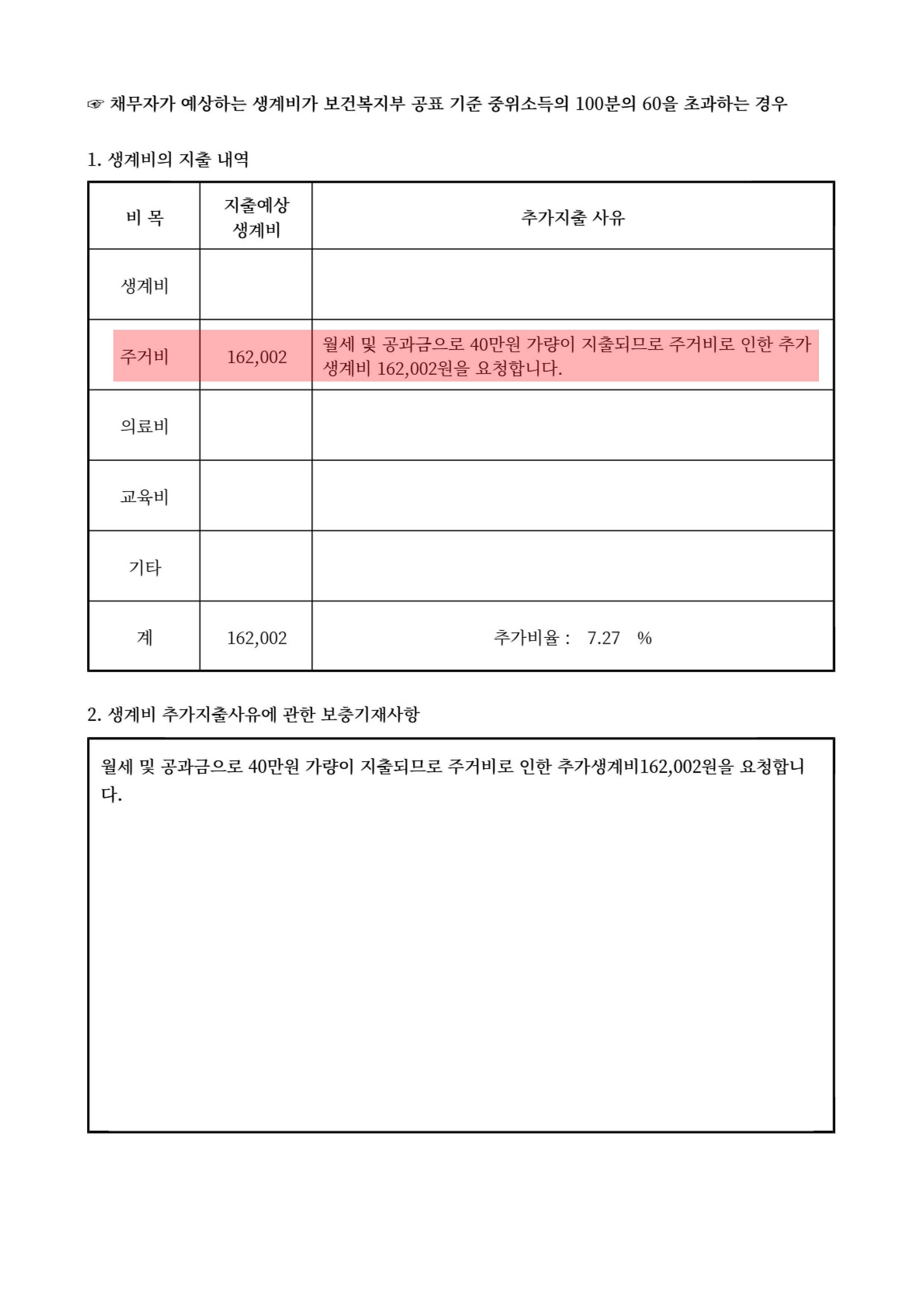 이에 주거비로 요청했던 추가 생계비도 인정받을 수 있었고,