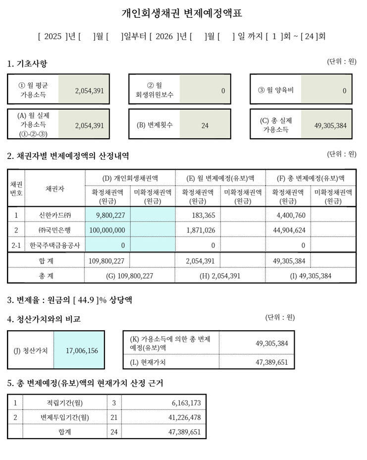 결과적으로 총 변제횟수를 24개월, 추가 생계비 30만원 인정 되었고, 보정없이