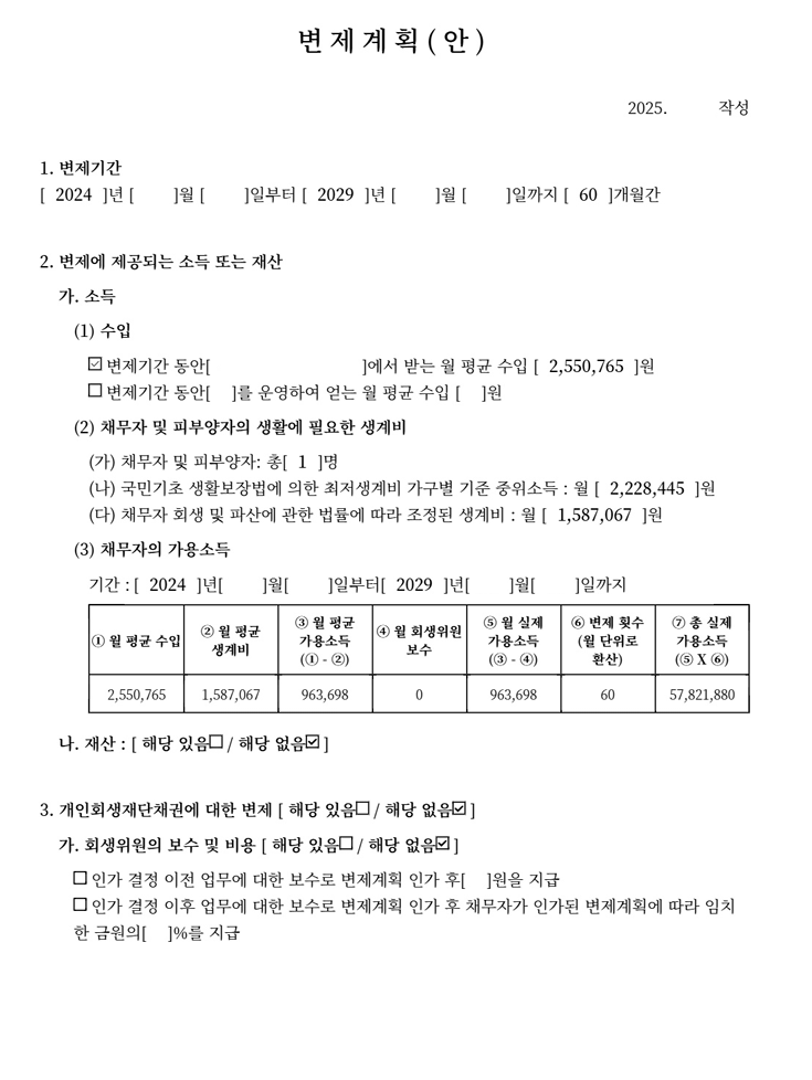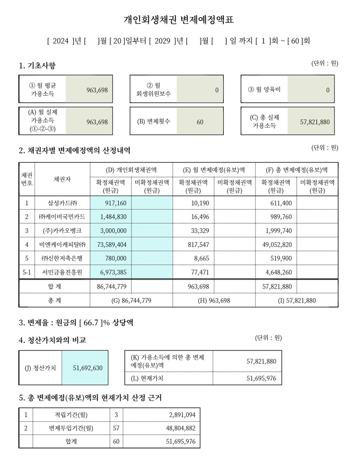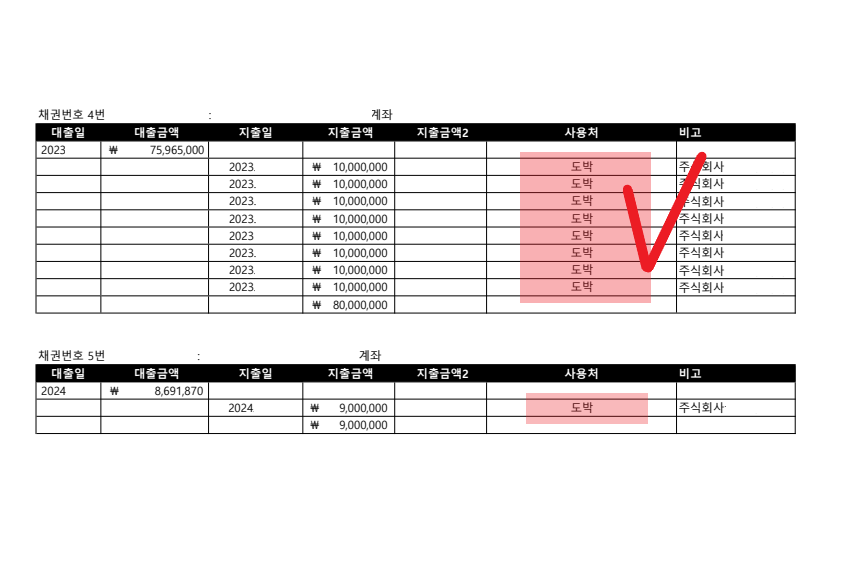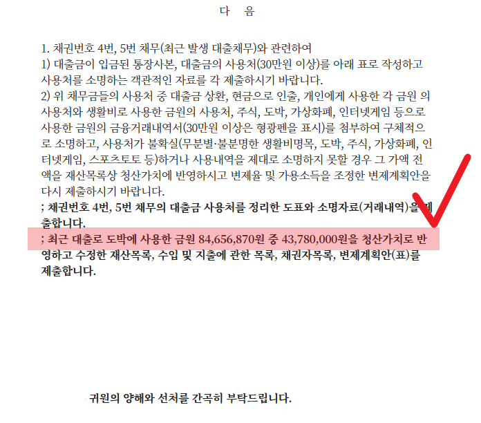 법원에서는 최근 2년 이내의 대출을 최근 대출로 보고 있으며, 최근 대출금에 대한 사용처를 묻고 불량한 채무, 소명이 불가한 채무, 편파 변제의 경우 해당 금원 전부를 청산가치로 반영하라고 하고 있습니다.