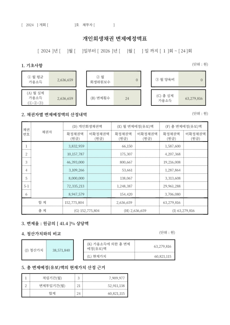 하지만, 보정작업 간 채무금액의 절반이 넘어가는 부분이 전세사기피해금액인 점을 강력히 어필하여, 결국엔 24개월 변제계획안으로 개시결정이 되었습니다.