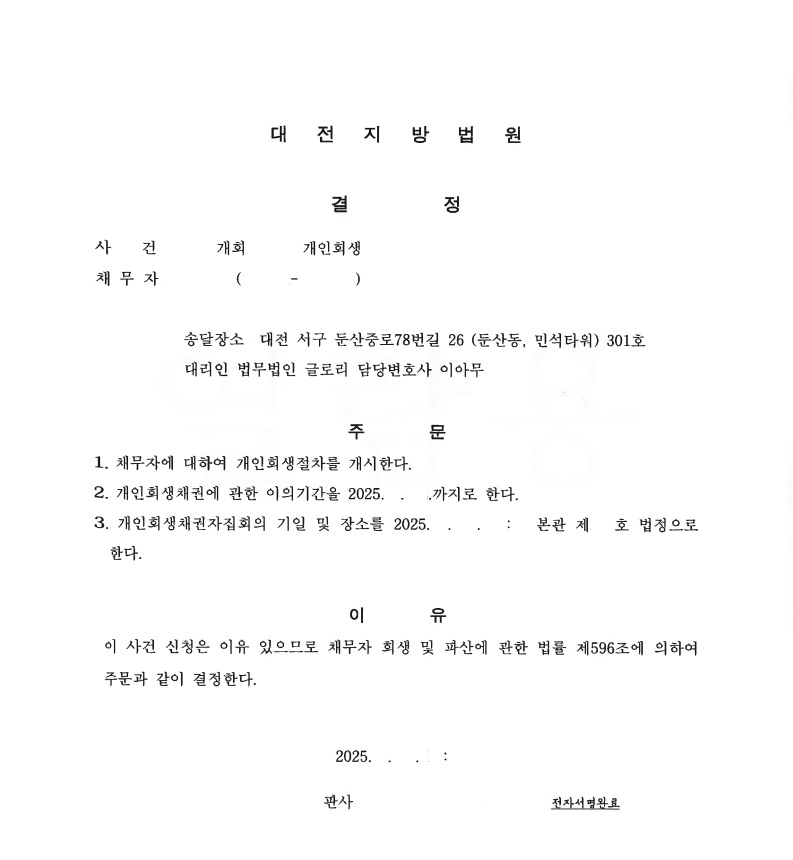 저희 법무법인 글로리는 신청인의 안타까운 사연을 고려하여 최소한의 변제금을 위해 노력했습니다.