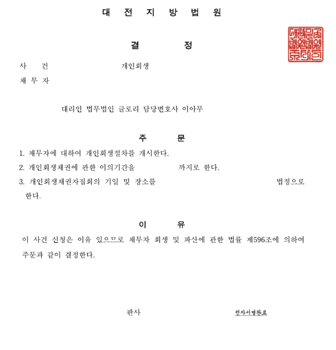 최근에는 건강 악화로 인해 병원비가 추가로 나가며 생활이 어려워지면서, 부득이하게 개인회생을 신청하시게 되었습니다.