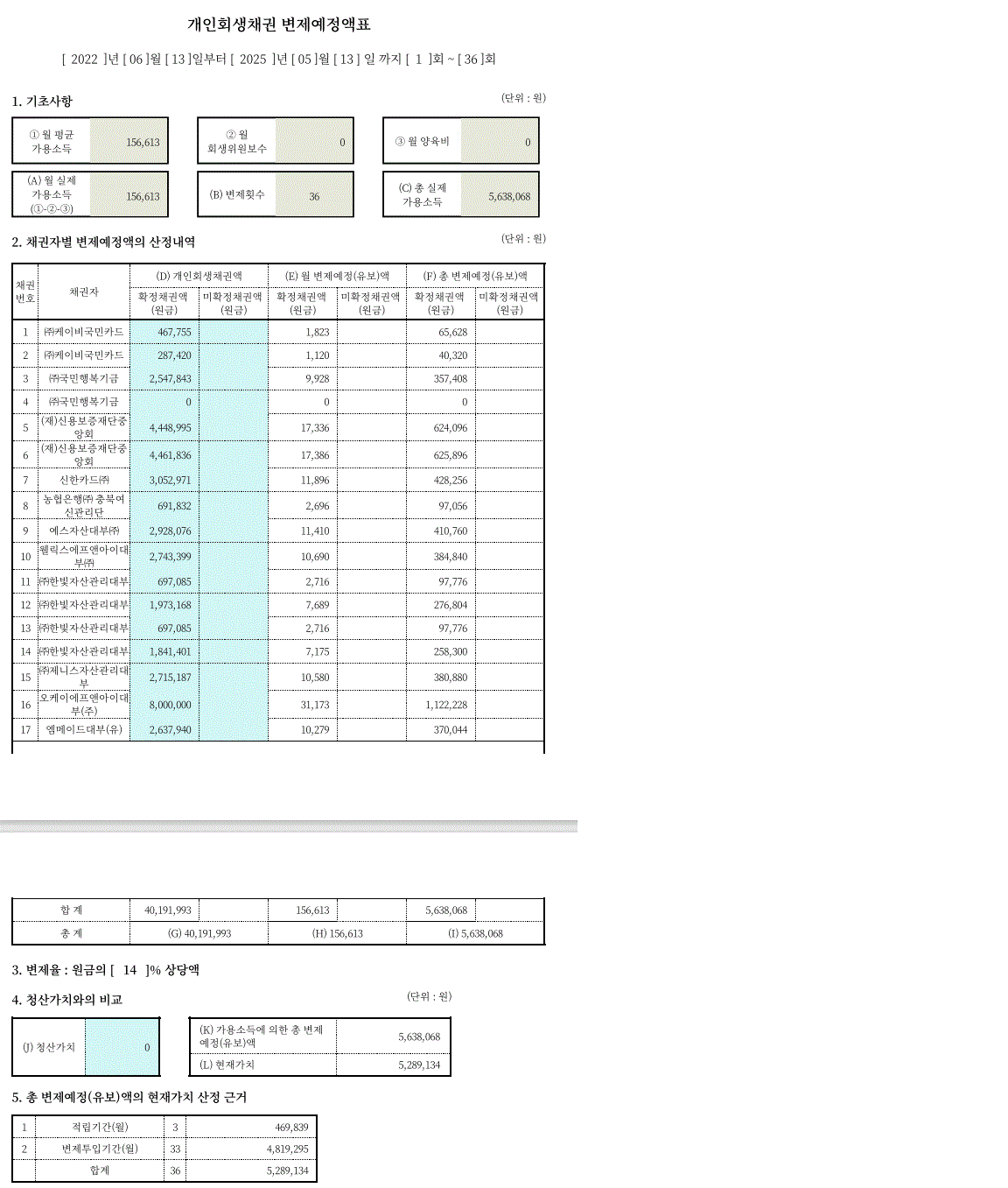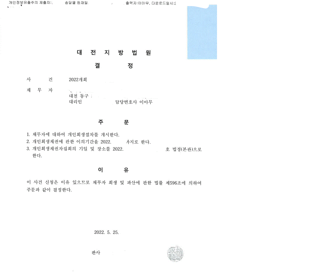 오히려 기존 개인회생절차보다 더 낮은 변제금응로 개시결정을 받을 수 있었습니다.