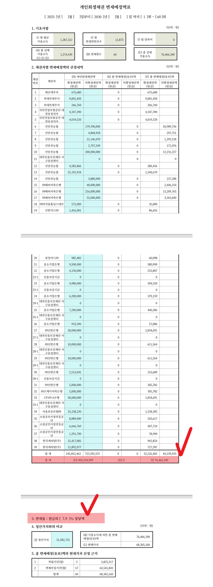 개인회생의 경우 채권 금액이 무담보 채권금액 10억원 또는 담보부 채권금액 15억원을 넘어가면 개인회생 요건 불충분으로 기각 사유에 해당합니다. 신청인 선모씨의 경우 무담보 회생 채권 9억, 담보부 회생 채권이 4억으로 총 13억의 채무를 가지고 있었습니다. 더 이상의 채무가 증대되는 것을 막기 위해 저희 글로리에서는 빠르게 회생 준비를 도와드렸습니다.