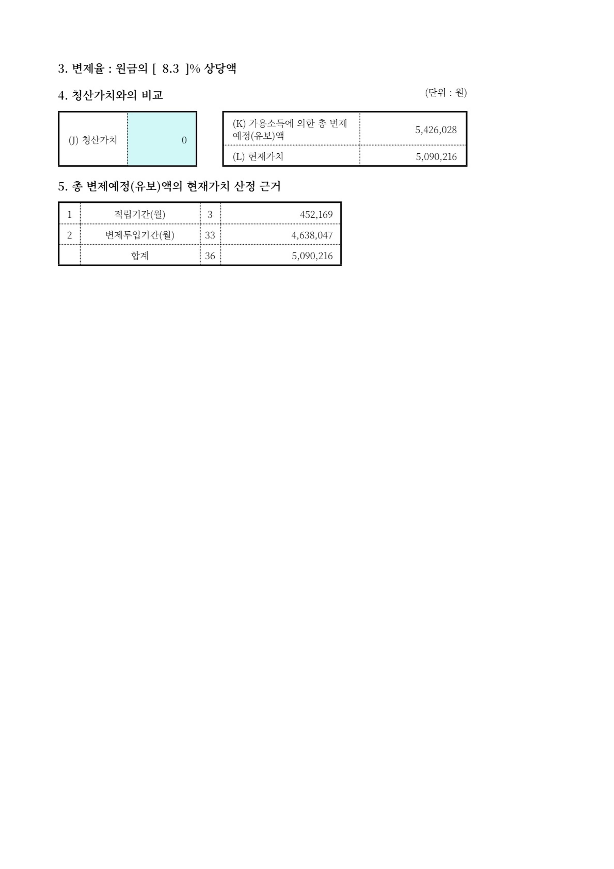 월 변제금 약 15만 원 (36개월 변제)