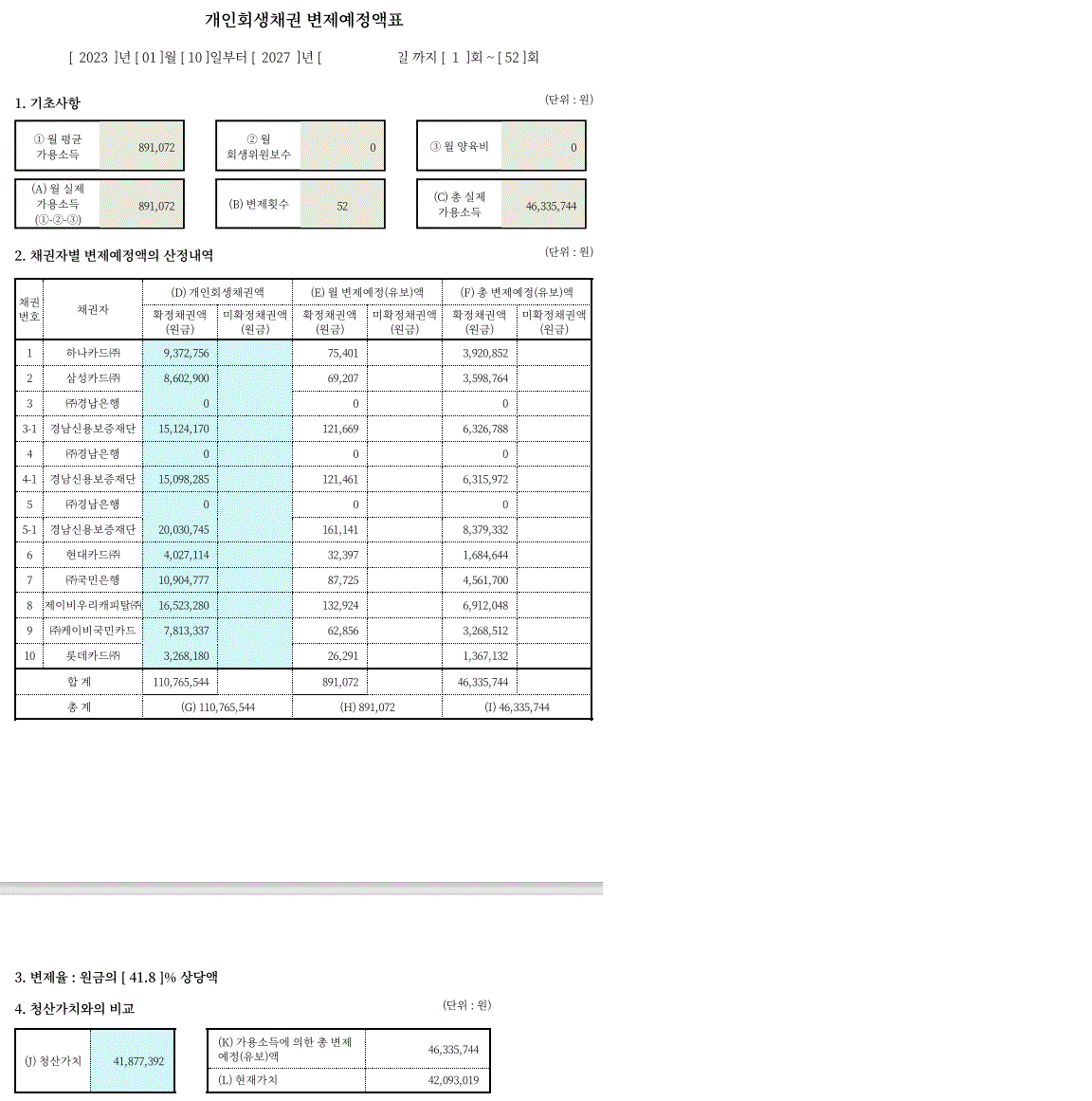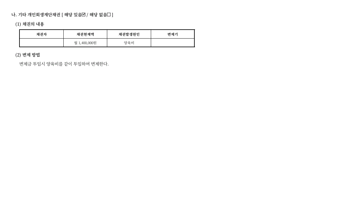 다른 요건들이 맞아 개인회생을 진행하는데는 큰 흠결이 없었습니다.