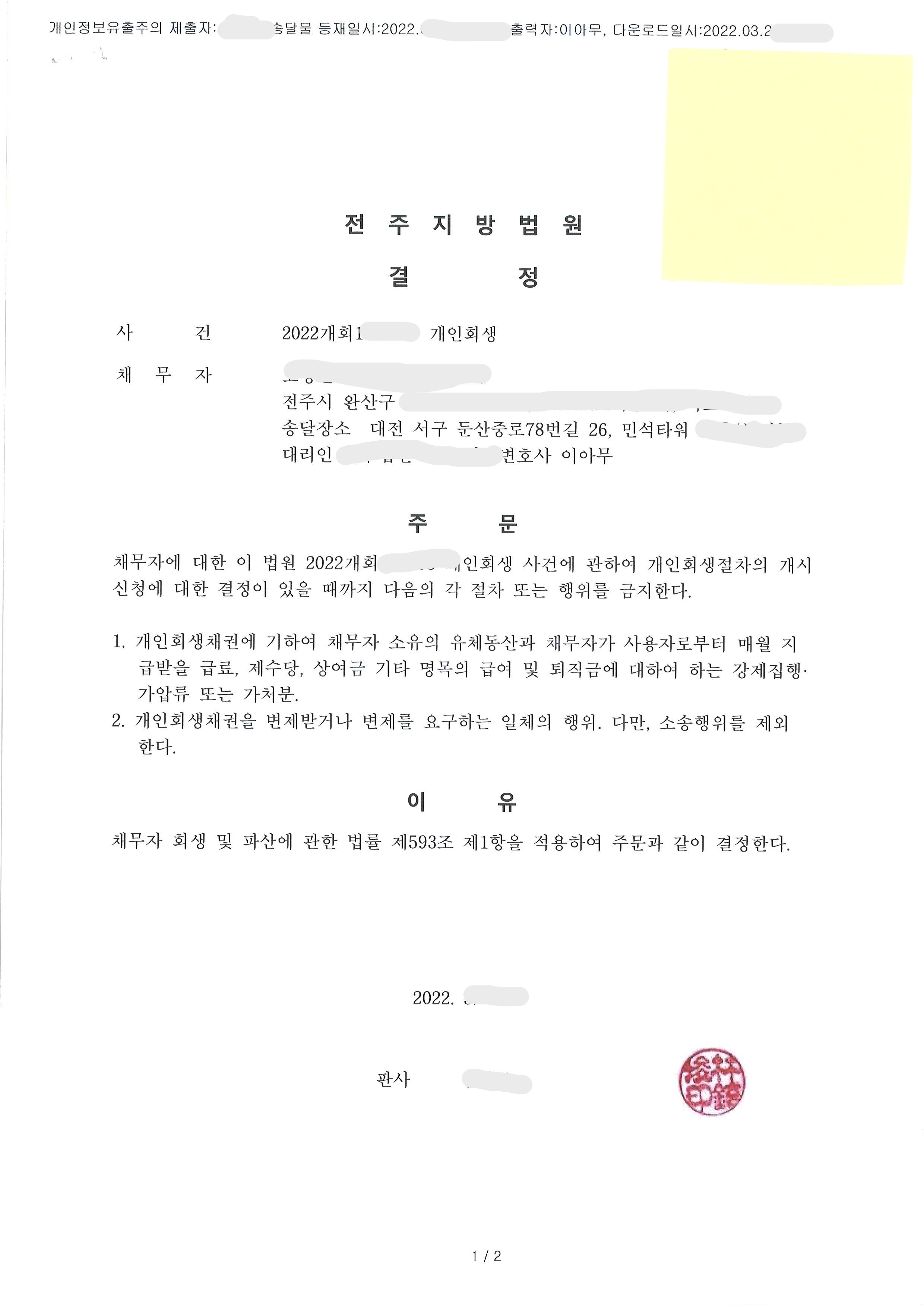 법무법인 글로리는 고말숙씨의 개인회생진행을 위해서라도