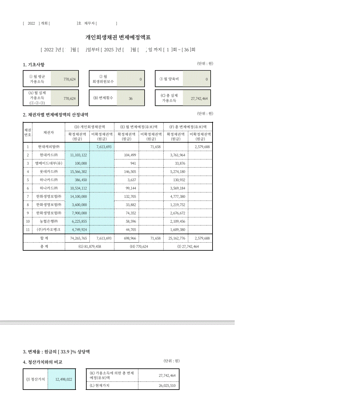 보험대출을 받았고 이를 변제하지 못하여 개인회생절차의 도움을