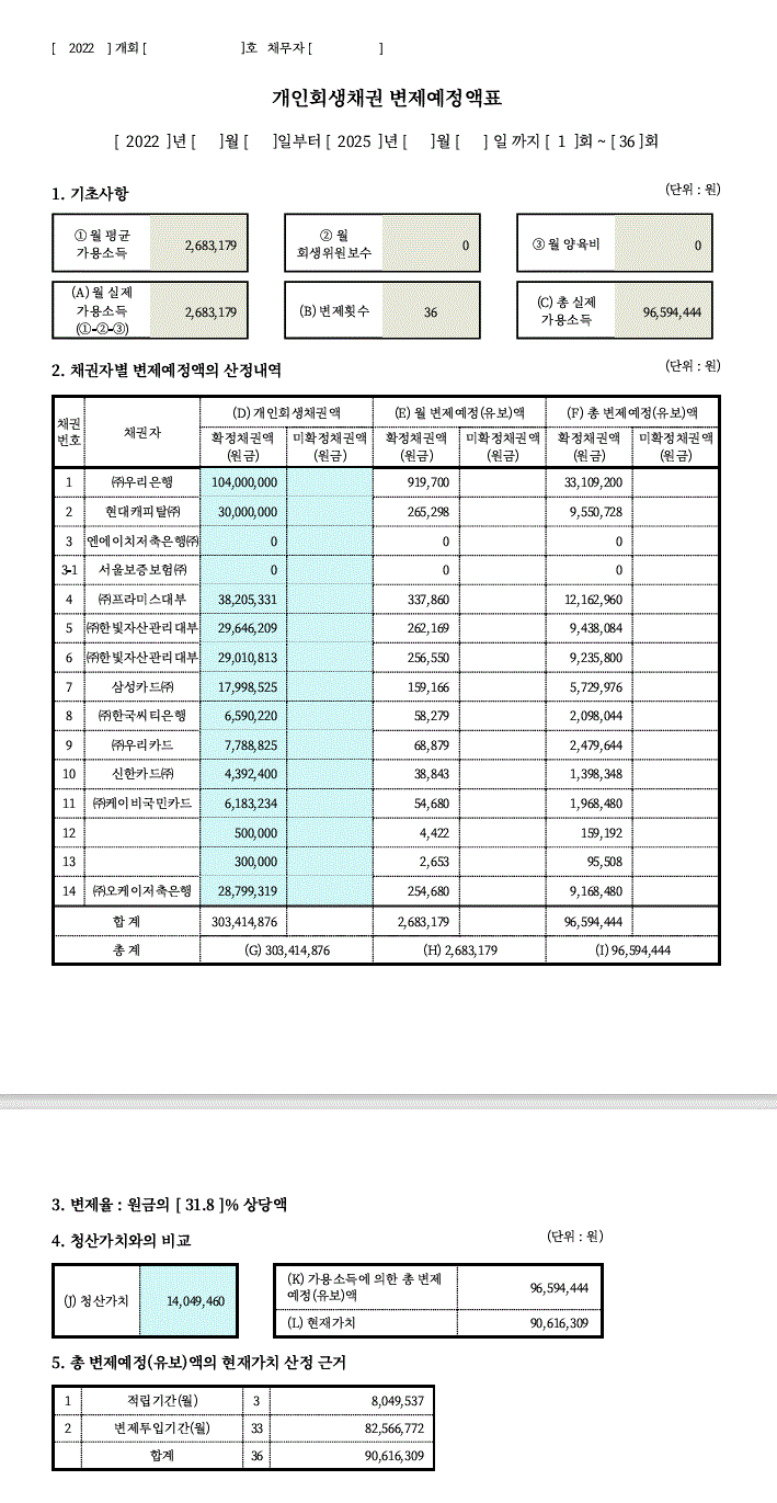 신청인과 같은 높은 급여소득자의 경우에는 당연히, 월 변제금 또한
