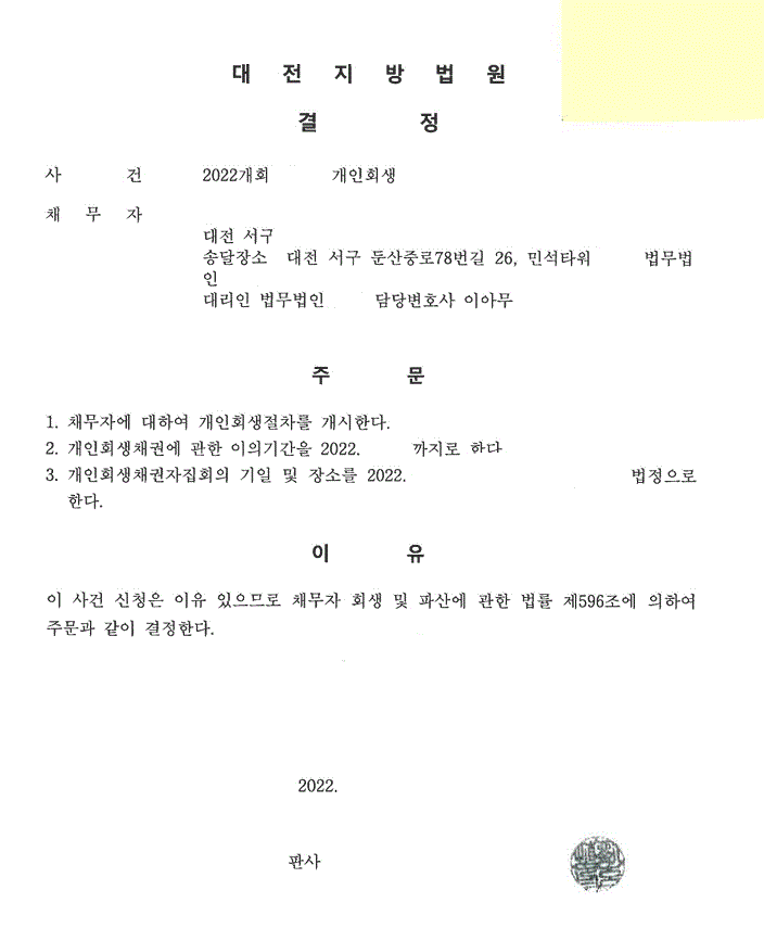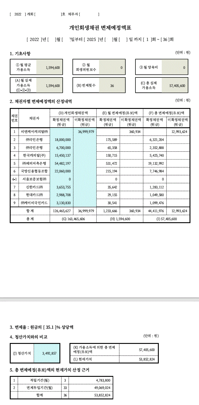 법원의 고려로 신청인은 급여의 약 30%정도만을 개인회생의 월 변제금으로 납입