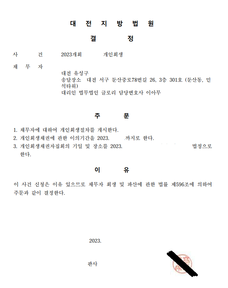 본 사례는 2023. 9. 접수하여 23. 10.개시까지 단 52일 밖에 걸리지 않은
