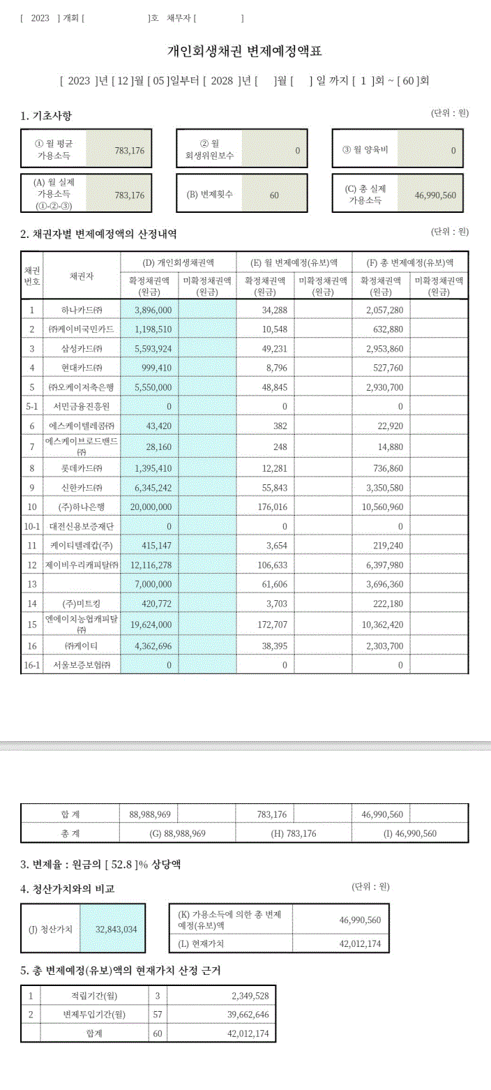 일반적인경우(70-80%의 변제율) 보다 낮은 50%초반의 변제율(이자전액 탕감)