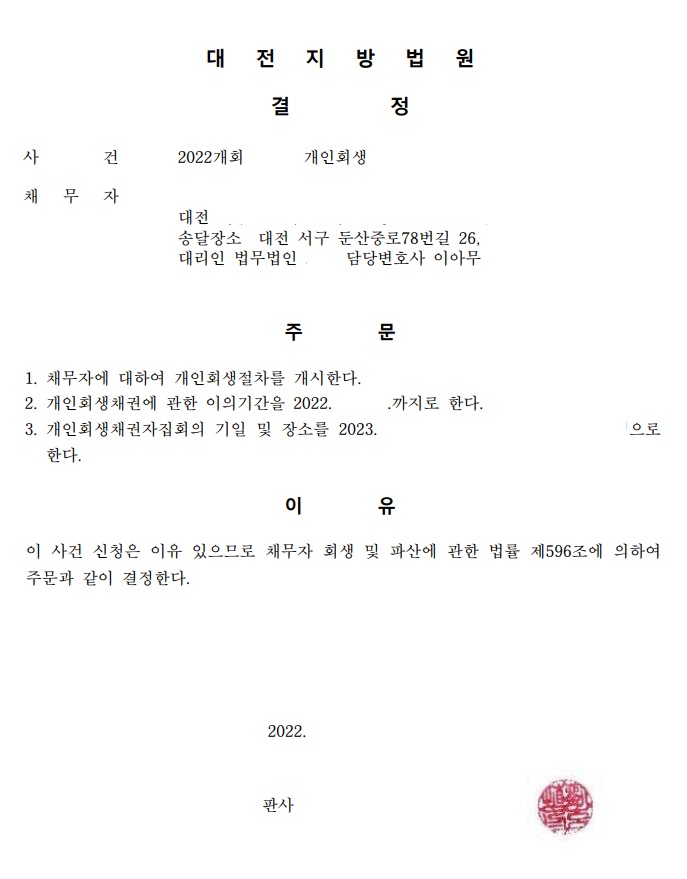 개인회생이 법원의 업무인만큼 형식과 요건에 맞춰야 하지만, 전문성이 있는 대리인이라면